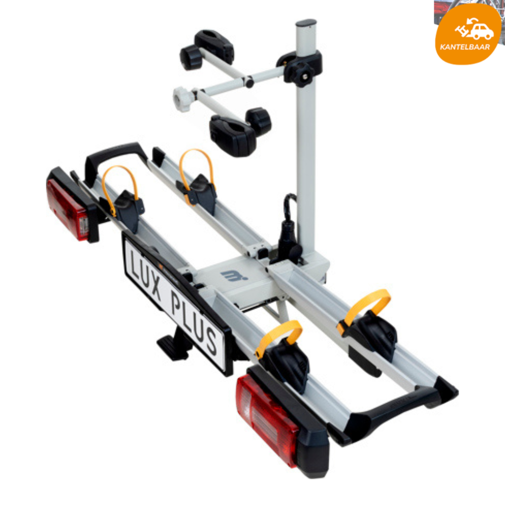 De MovaNext Lux Plus CF is de kantelbare uitvoering van de MovaNext Lux CF. Hij weegt 15,8 kg en kan tot 60 kg belast worden en is daarom ook geschikt voor het vervoer van twee E-bikes. De MovaNext Lux Plus is makkelijk te monteren op de trekhaak en met een extra voetpedaal is de drager kantelbaar, zodat u toegang tot uw bagageruimte houdt.